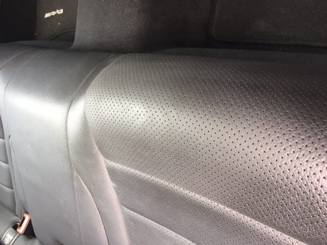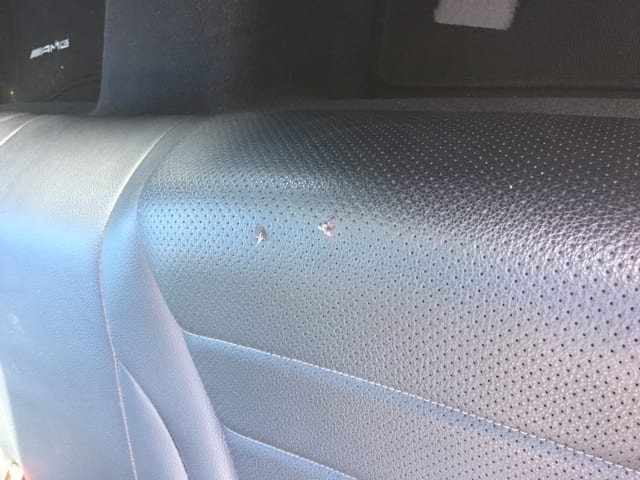 Here you can see the damage to a rear seat on a Mercedes vehicle in Warwickshire. This was a real tough job as the leather seat has a perforated finish – our most experienced Technician Ryan carried out this repair to a high standard, yet another happy customer.