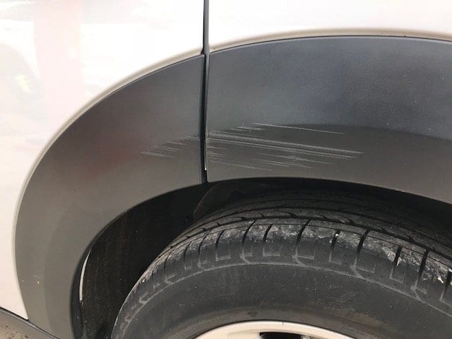 After parking his Mini, this customer returned to find someone had left his wheel arch like this. After pricing up replacements panels, he then rang Trim Technique, we repaired it back to new at a fraction of the price.