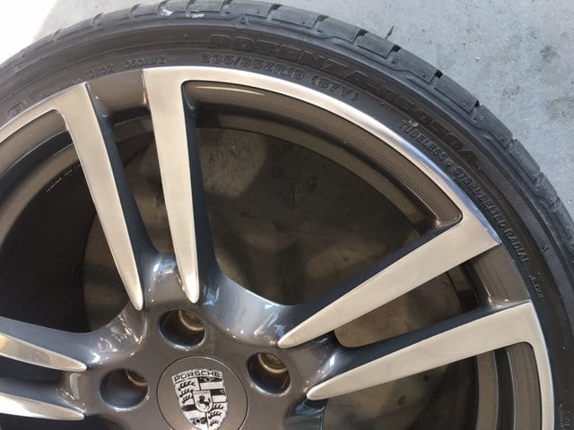 Here you can see the before and after images of a set of diamond-cut alloys we refurbished for a Porsche in Leicestershire.